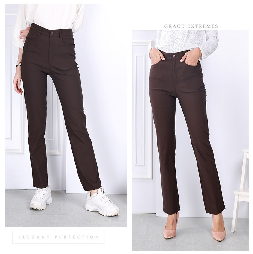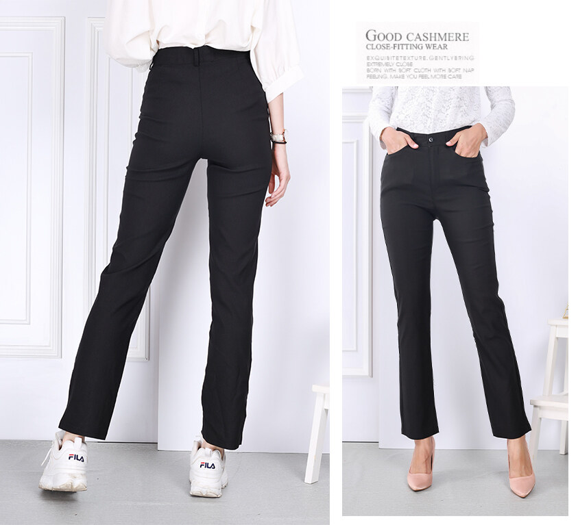 Size 26-34 Women Straight Cut High Rise Side Pocket Trouser Work Pants Non Elastic Office And Casual Wear [P21127]