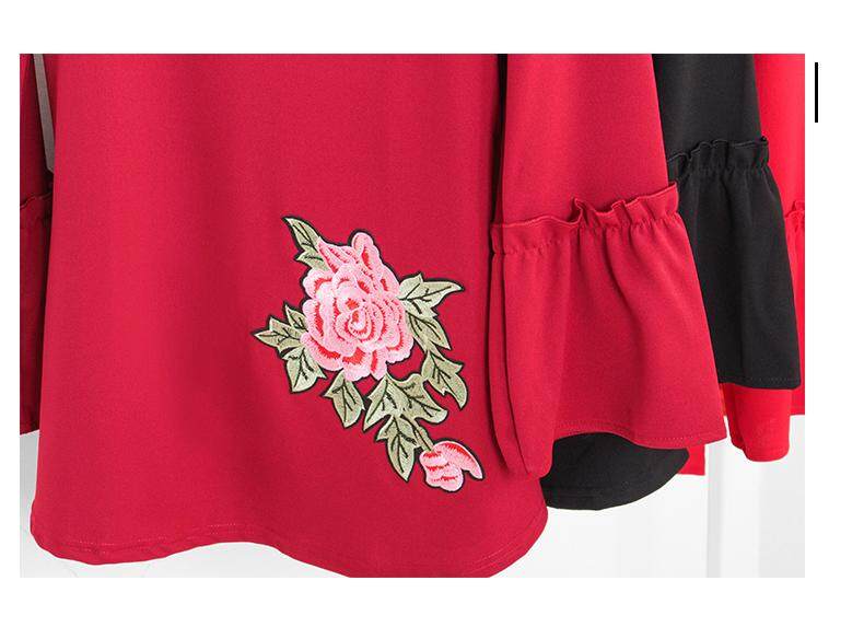 Women Flounce Accented Rose Embroidery Top [M15993]