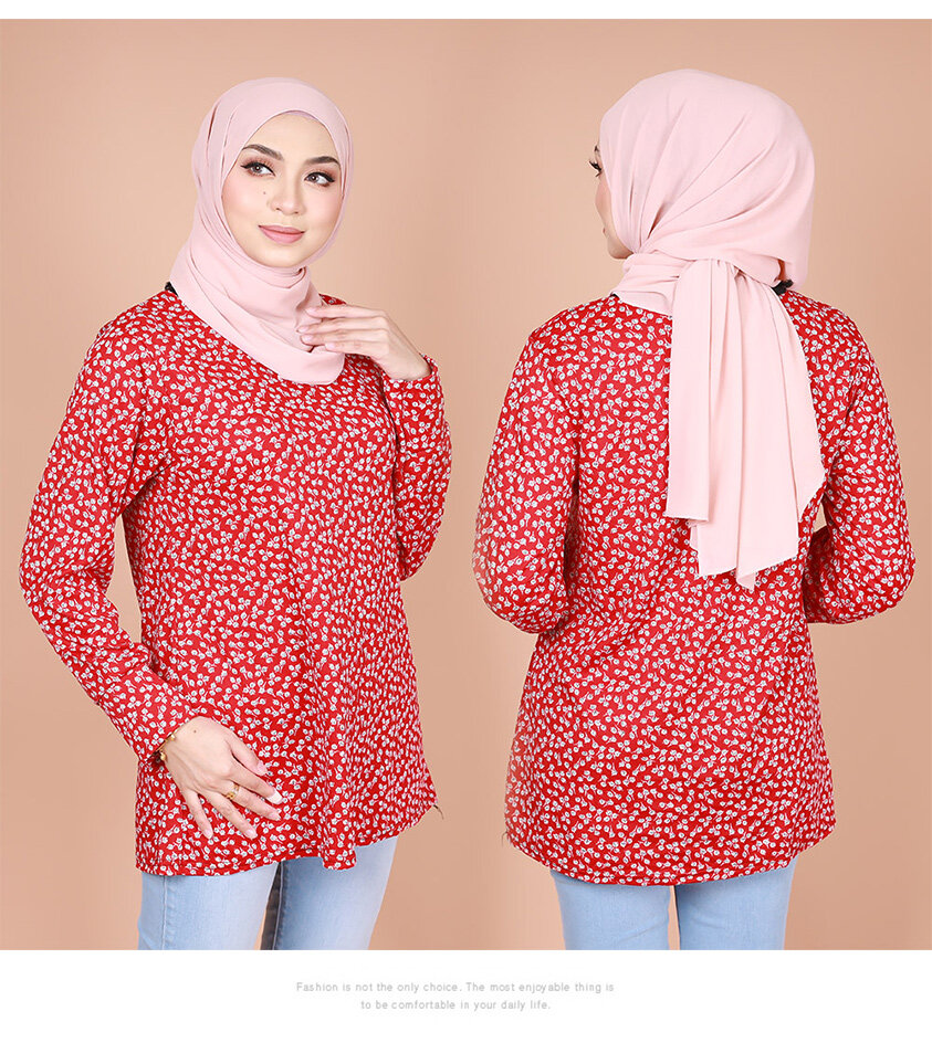 Women Ghaniyah Round Neck Floral Ready Stock Long Sleeves Blouse Baju Muslimah Wanita [B14763]