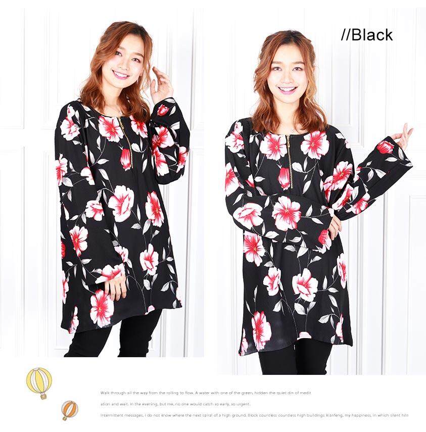 Women Plus Size Printed Long Sleeve Zipper Blouse [B19342] Ratings: 0 - 0 votes