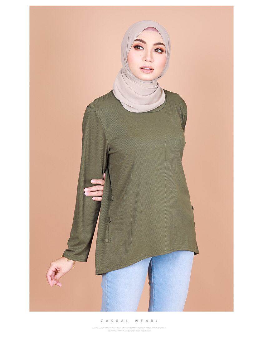 Women Qusarah Ready Stock High Low Long Sleeves Basic Muslimah Blouse Baju Wanita [B11479]