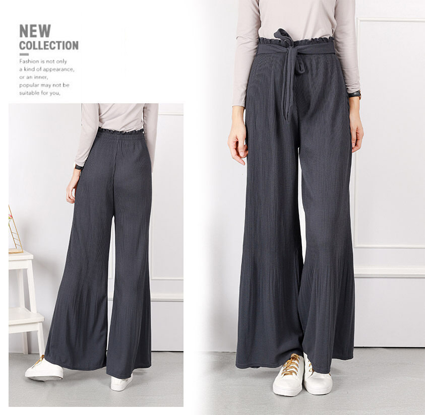 Women Strong Elastic Self Tie Culottes Palazzo Wide Leg Long Pants Seluar Panjang [P23985]
