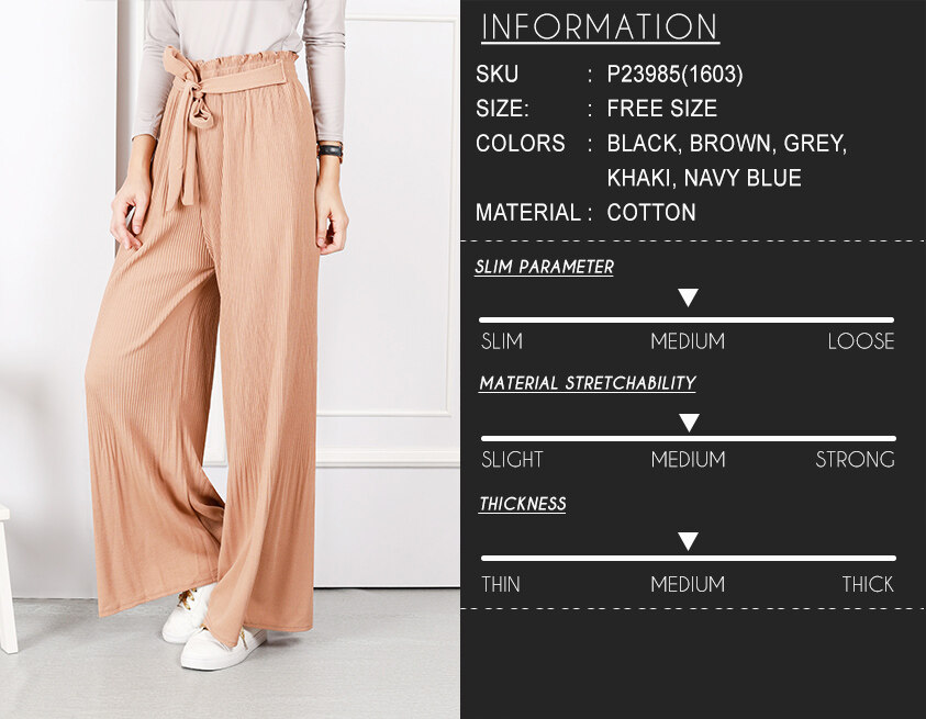 Women Strong Elastic Self Tie Culottes Palazzo Wide Leg Long Pants Seluar Panjang [P23985] Ratings: 0 - 0 votes
