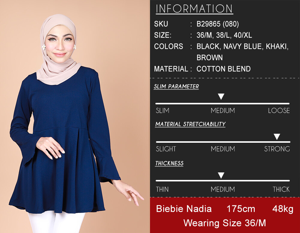 Women Yuna Plus Size Cutting Ready Stock Elegant Peplum Muslimah Blouse Wanita Baju Size Besar [B29865] Ratings: 0 - 0 votes