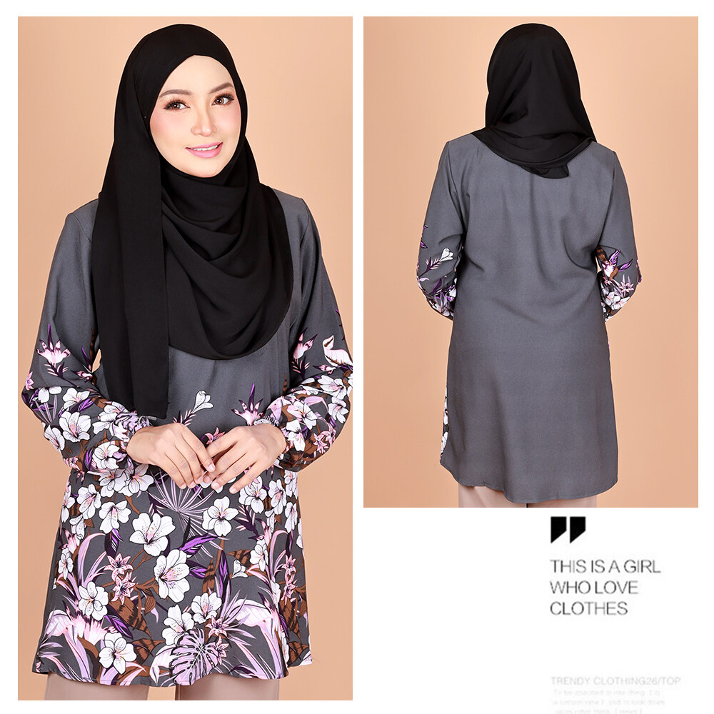 Airena Muslimah Long Sleeves Diamond Moss Crepe Blouse Baju Wanita [B3081 DESIGN E & F]