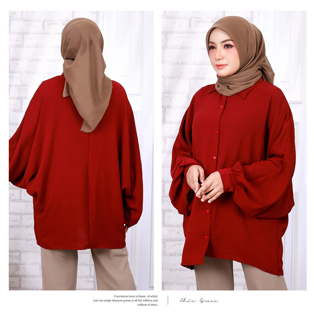 Asifa Women Long Sleeve Batwing Sleeve Blouse Baju Blouse Wanita [B3715]