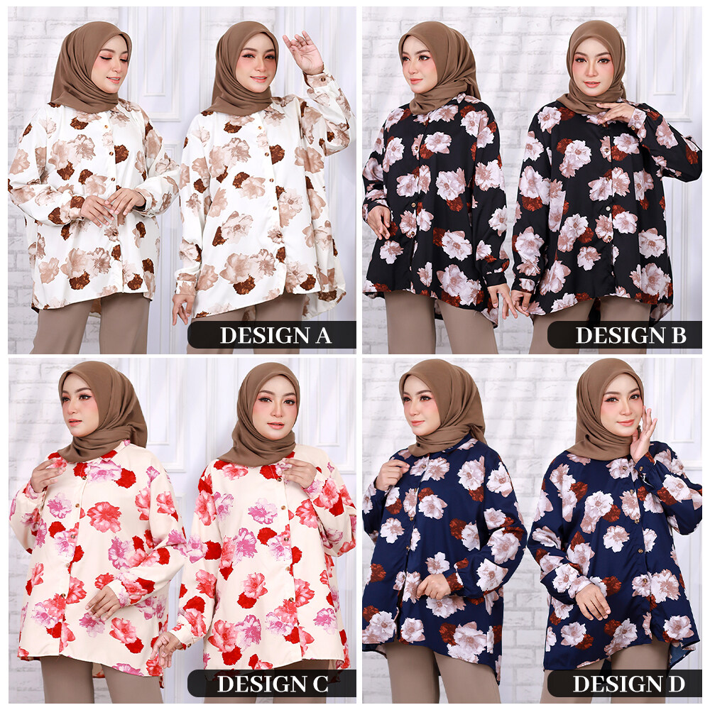 Qaseh Muslimah Floral Pearl Crepe High Collar Blouse [B19881] Ratings: 0 - 0 votes