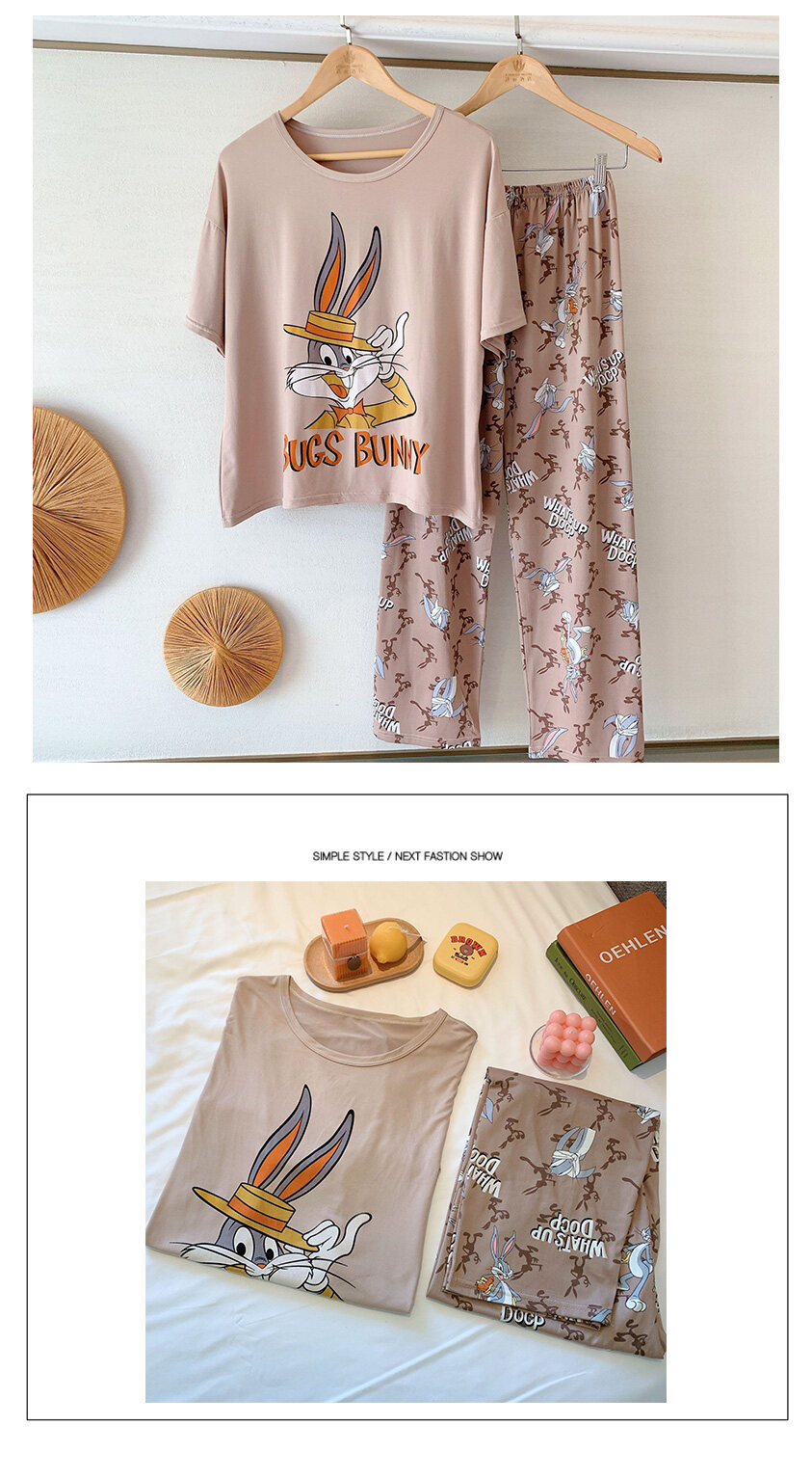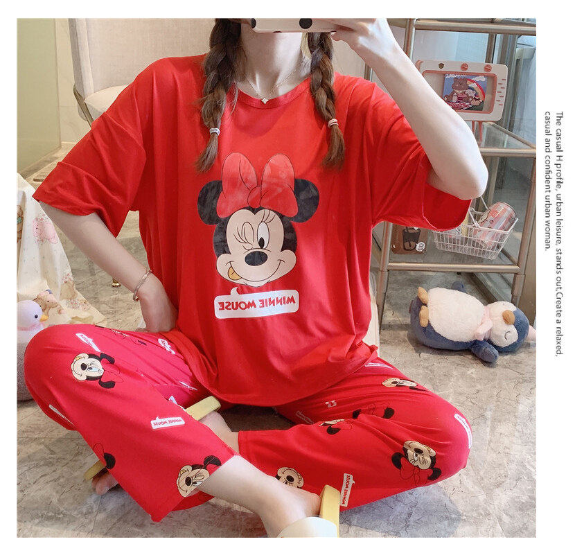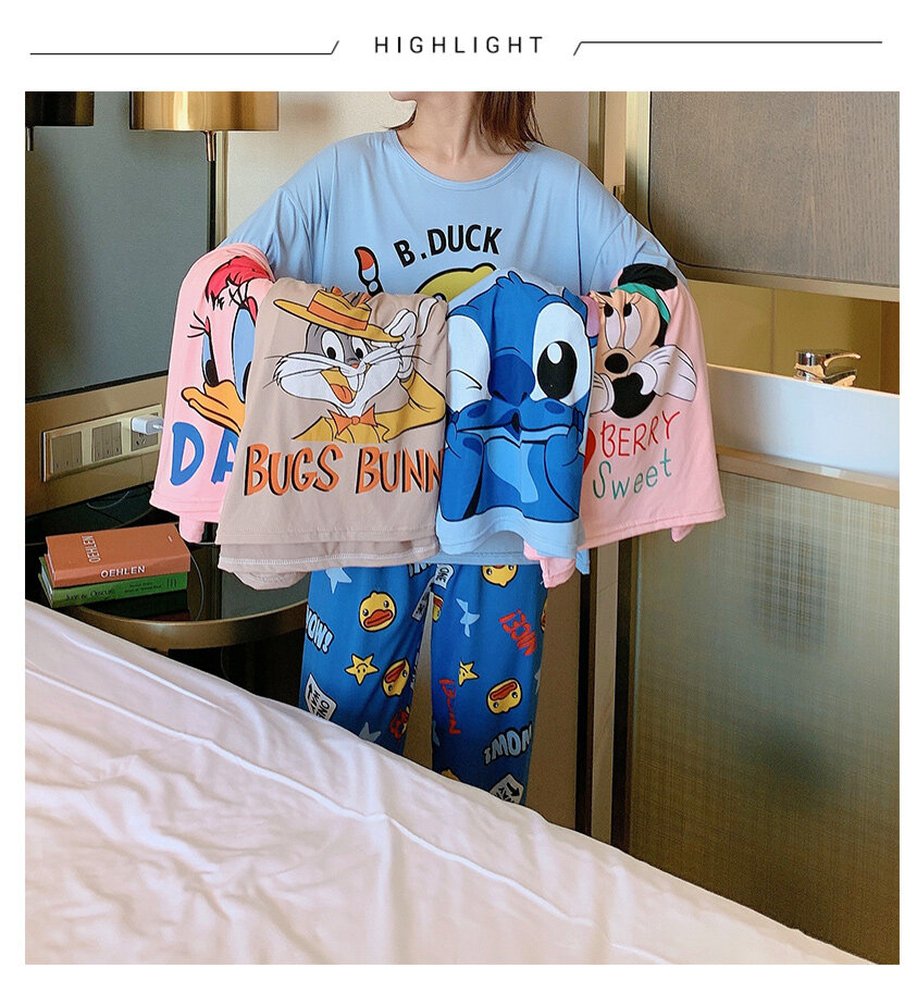 Women Cute Cartoon Printed Short Sleeve Pyjamas Sets Ladies Baju Tidur Perempuan [PJ31072]