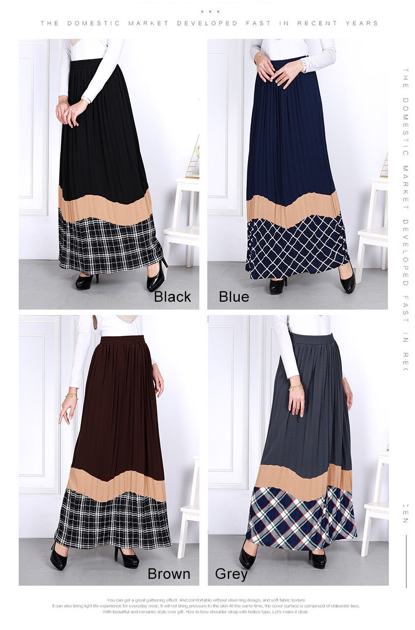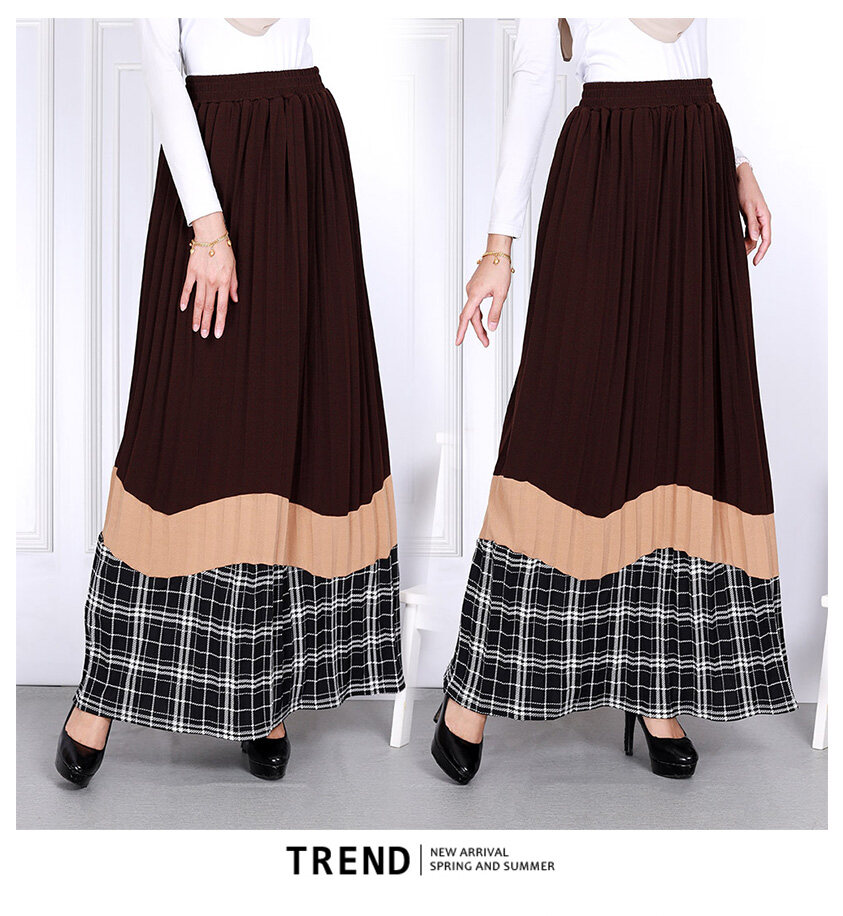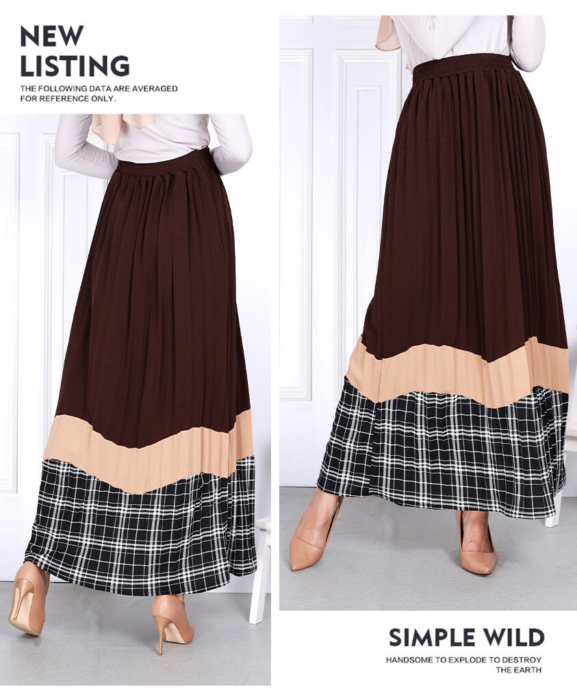 Women Half Checkered Elastic Pleated Muslimah Long Maxi Panjang Wanita Skirt [S11412]
