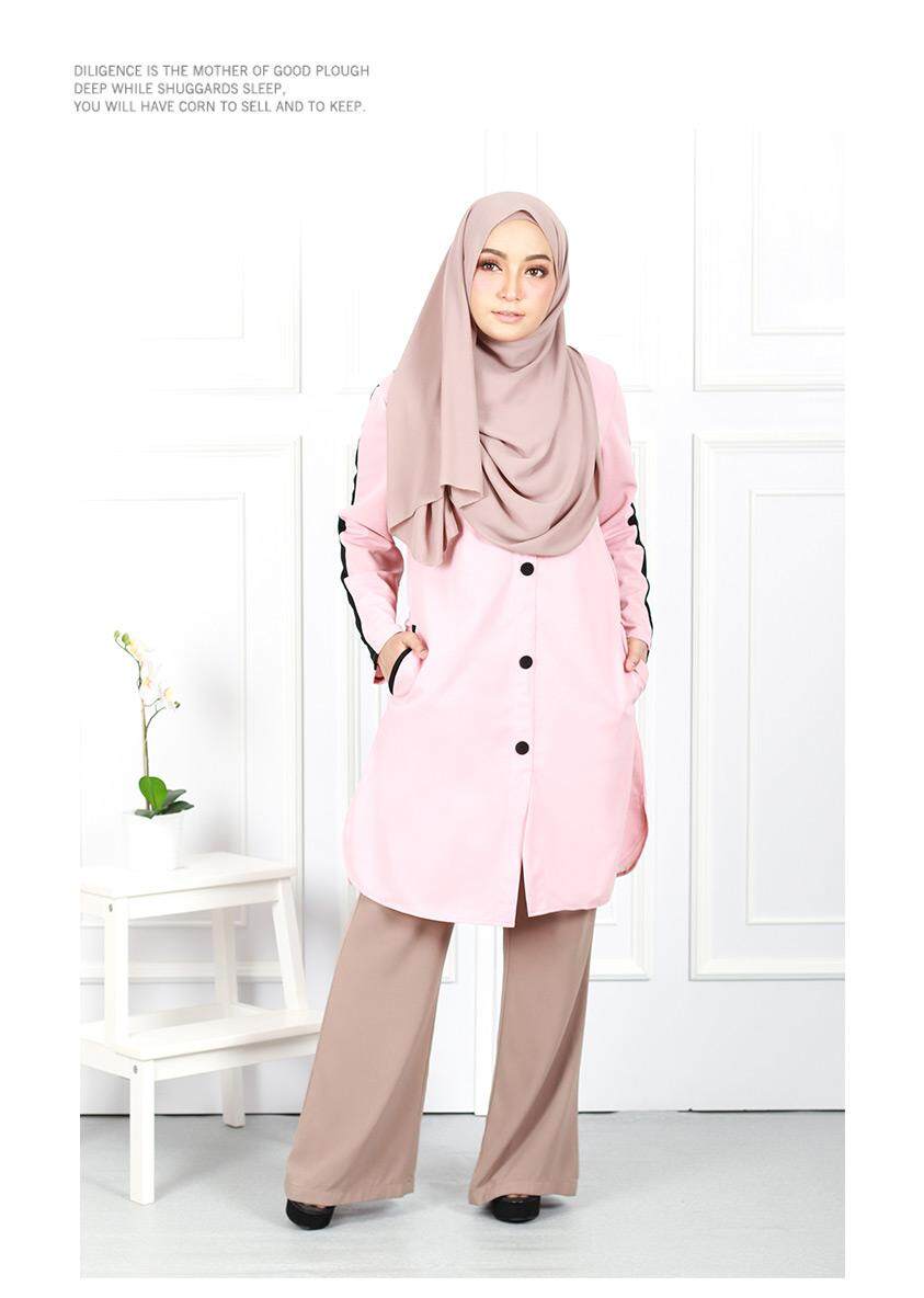 Women MUTIARA Shoulder Contrast Tunic Long Blouse [B12995]