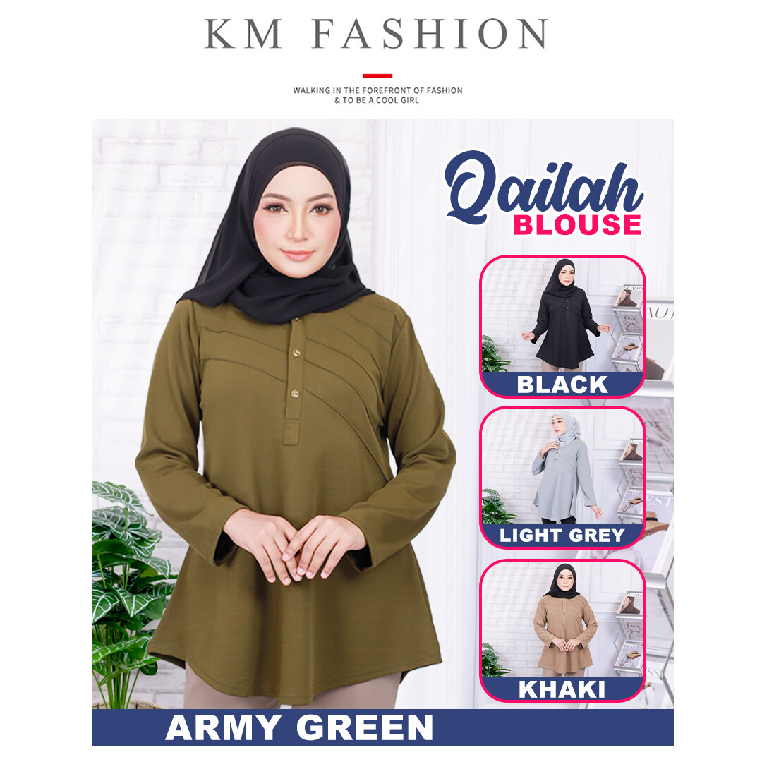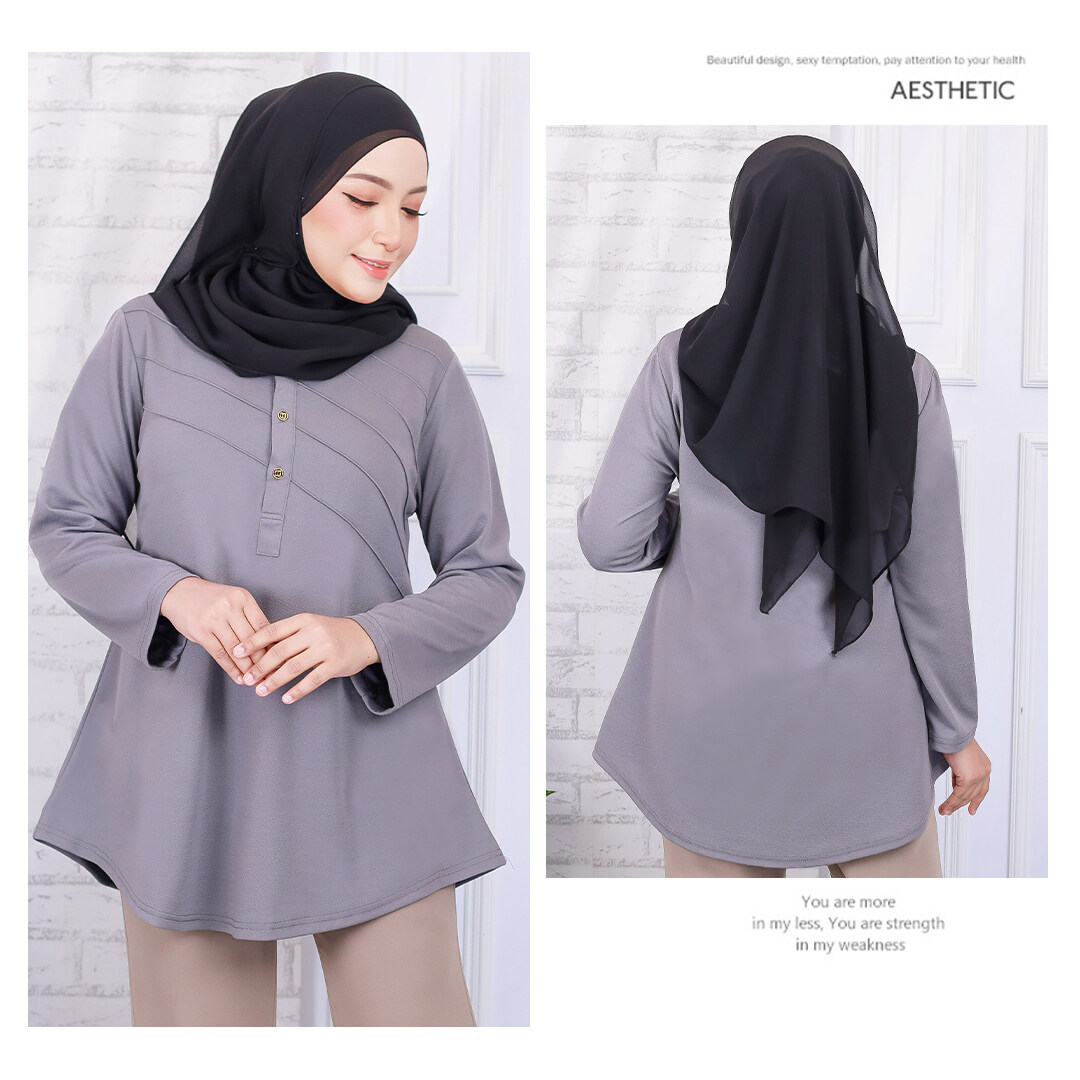 Women Qailah Front Button Muslimah Long Sleeves Nursing Friendly Blouse Baju Wanita Top [B22724]